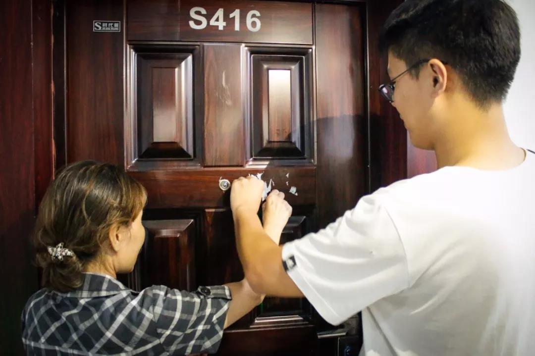 发现门框上小广告遍布、走廊公共卫生脏乱等现象,党员们看在眼里、急在心里,各党员拿好劳动工具,搭档宿管阿姨,扛起文明大旗,主动出击、率先垂范。