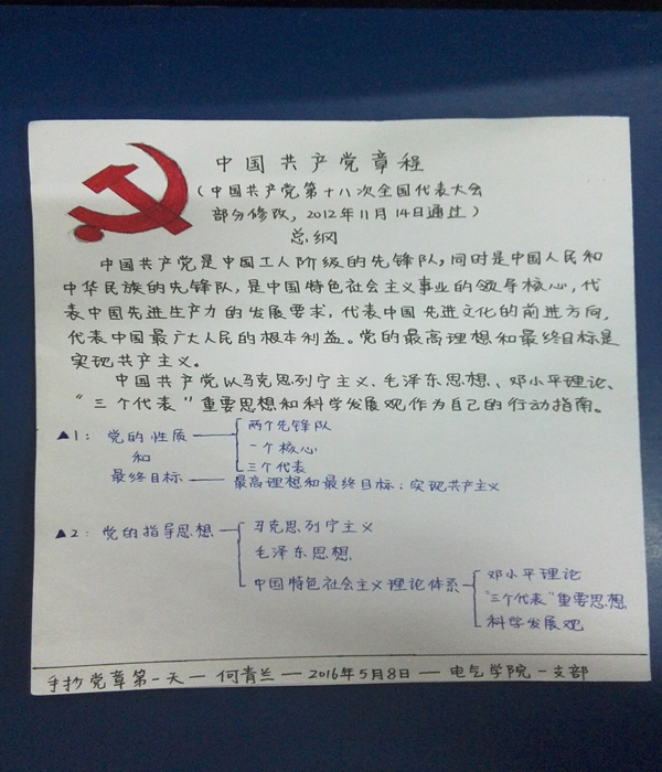 今天,是我开启“微心声”之路的第一天,看着自己一笔一划写下的党章总纲前两段,不能不说内心是充满着神圣与庄严的。