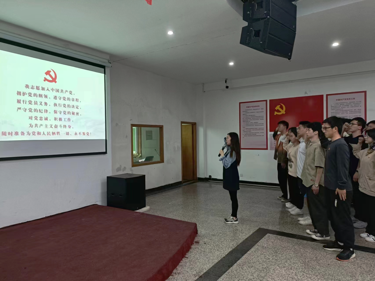 刘佳带领全体发展对象宣读入党誓词,进行入党宣誓。