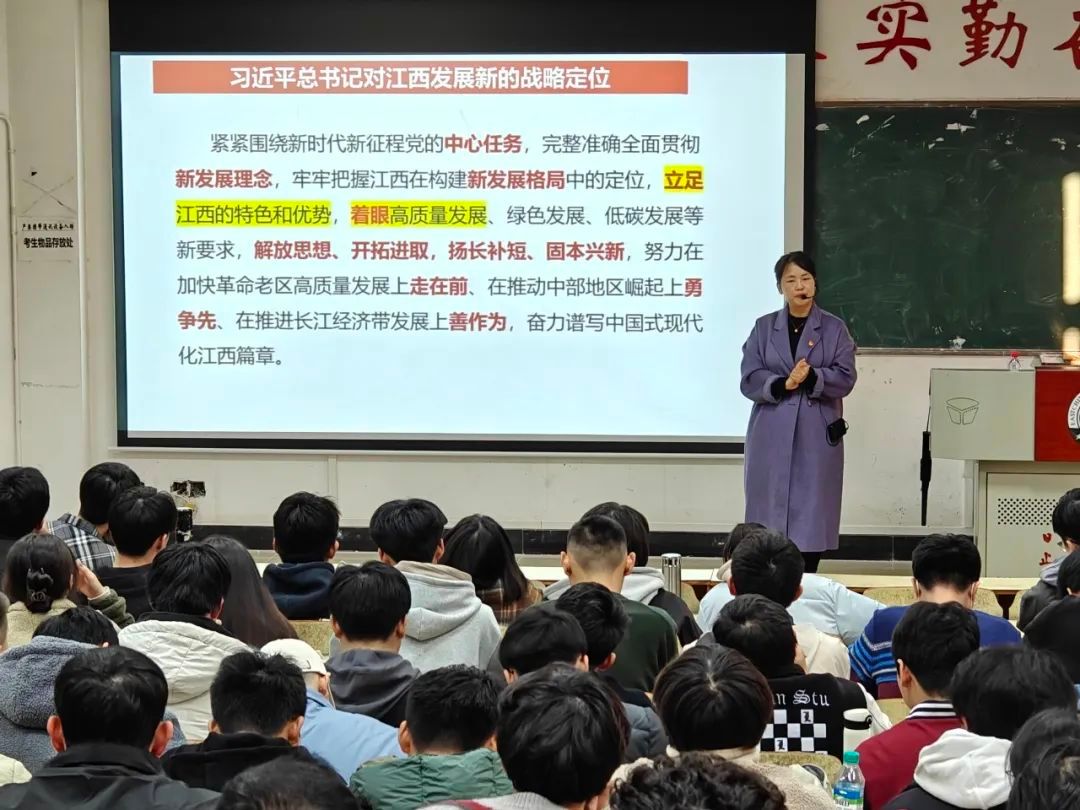 张静老师强调,广大学子应当坚定与时代主题同心同德的理想信念,传承红色基因,锤炼高尚品格,矢志艰苦奋斗,树立梦想从实干开始的观念,学在江西、干在江西、施展才华在江西,为谱写全面建设社会主义现代化国家江西篇章注入青春活力、贡献青春智慧。