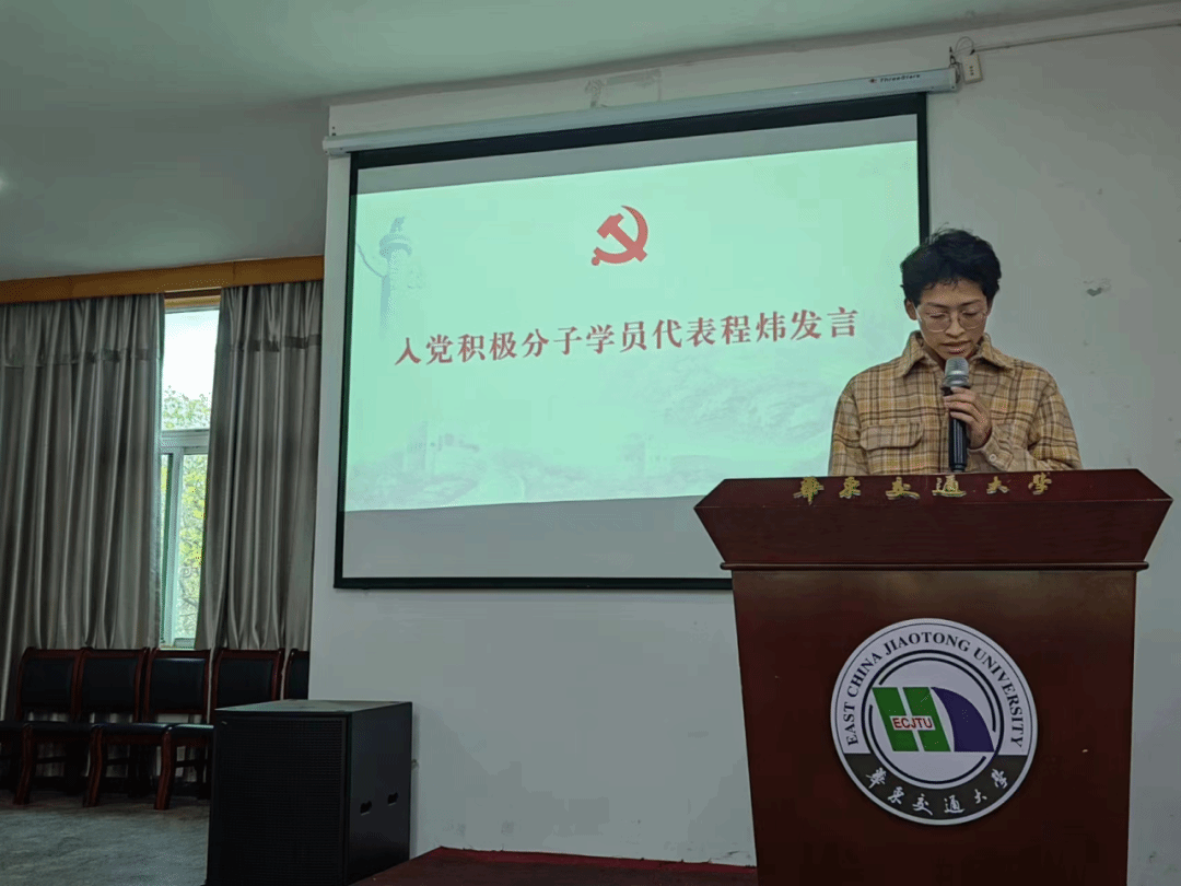 入党积极分子学员代表程炜发言。他表明了入党的决心并代表全体学员表态,要珍惜本次上党课的机会,此次党课培训是我们进一步加强理论学习,不断提升思想境界,增强修养的重要途径。从各方面严格要求自己,遵守培训纪律,端正学习态度,积极参与讨论与交流,将学到的理论知识与自己的实际结合起来。