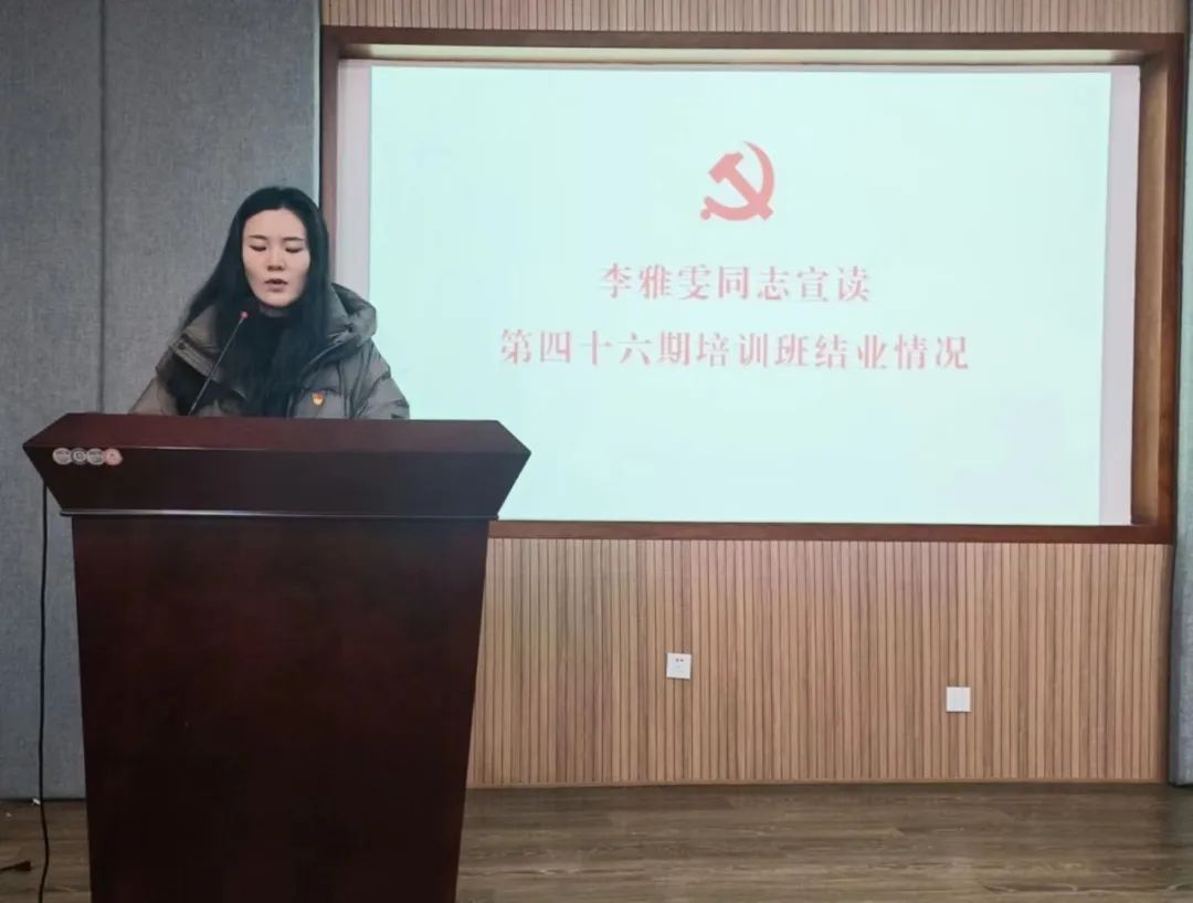 会上,李雅雯宣读培训班结业情况,宣布356体育在线官网分党校第46期党课培训班理论课程与实践课程圆满完成,并公布了入党积极分子优秀学员名单。