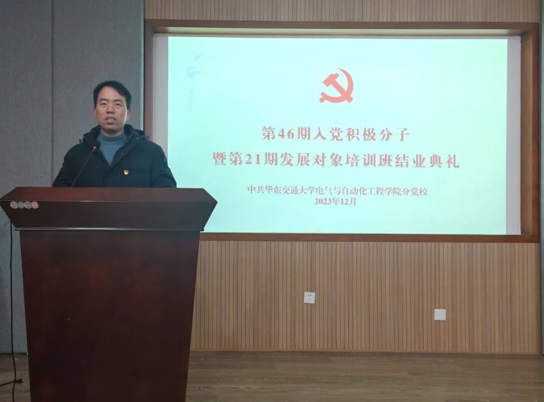 优秀积极分子学员代表黄伟朋发言。他分享了此次党课培训学习期间的收获与感悟,并代表全体入党积极分子郑重表态:坚持党员标准,绷紧“一根弦;牢记初心使命,守住“一颗心”;勇立时代潮头,担好“一条梁”。在日常的学习与生活中展现铁的作为、铁的担当,不忘初心,牢记使命。在学深悟透上下功夫、在知行合一上求实效,把人生的小我真正融入国家发展、民族进步、人民幸福的大我之中。