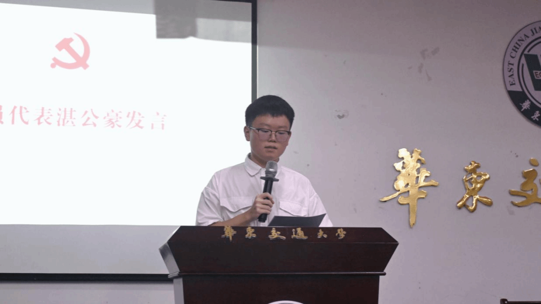 湛公豪同学代表入党积极分子学员发言,他表示当代青年要立鸿鹄志、做奋斗者,敢于做时代先锋、勤于追逐梦想。并代表全体学员表态,要加强组织纪律,服从培训安排;要认真学习党的基本理论,深入理解党的历史,不忘初心使命;要保持谦虚谨慎态度,虚心接受他人意见;要切实将理论和实际联系起来,发挥模范示范作用。