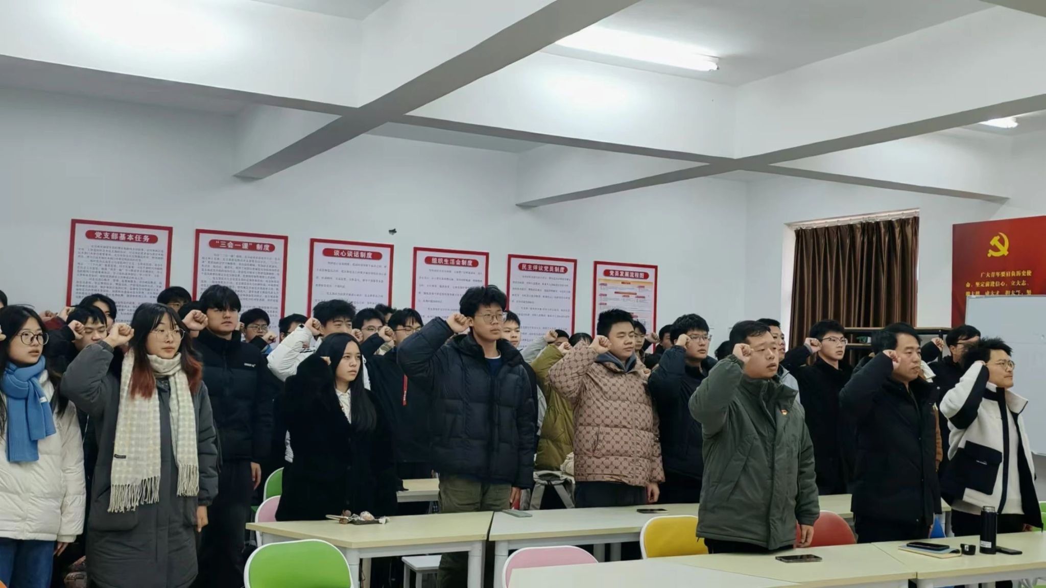 最后,刘修财老师对本次宣誓仪式进行了高度赞扬并向新发展的党员寄语:新党员要珍惜自己党员身份;要坚定理想信念、牢记入党初心;要加强学习,不断提高自身素质;要严格遵守党规党纪、校规校纪;要勇于担当作为,积极发挥先锋模范作用。同时希望全体党员在以后的工作和学习当中时刻以党员的标准,严格要求自己不断加强党性修养,努力践行党的宗旨,以实际行动为学院、学校的发展做出贡献。
