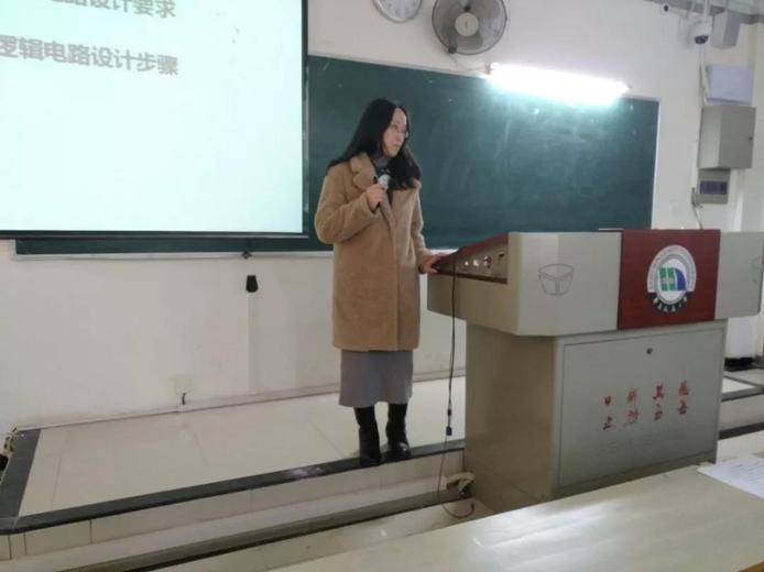 首先进行课堂展示的是许莹莹老师,她选择数字电路中“逻辑电路”的相关内容进行讲解,通过最为基础的内容,展现出扎实的基本功与其轻松愉悦的独特课堂魅力。