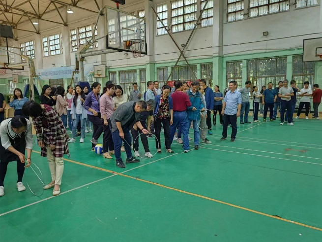 为鼓励老师们走出办公室走出实验室,356体育在线官网分工会于10月12日在南区风雨球馆举行一场充满欢乐的教职工趣味运动会。本次趣味运动会由四个项目组成,分别是滚铁环、击鼓颠球、接力投篮和投壶。由各教研室组成七支队伍组成,分别是电力牵引教研室、电气化教研室、自动化教研室、轨道交通信号教研室、电子信息教研室和建电教研室、学院办公室和学工办、电基础教研室。全体教职工积极参加,这是一个让大家尽情挥洒汗水、欢笑交织的时刻,加强了教师之间的交流,丰富了课余生活。下面让我们一同看看运动会的精彩瞬间吧。