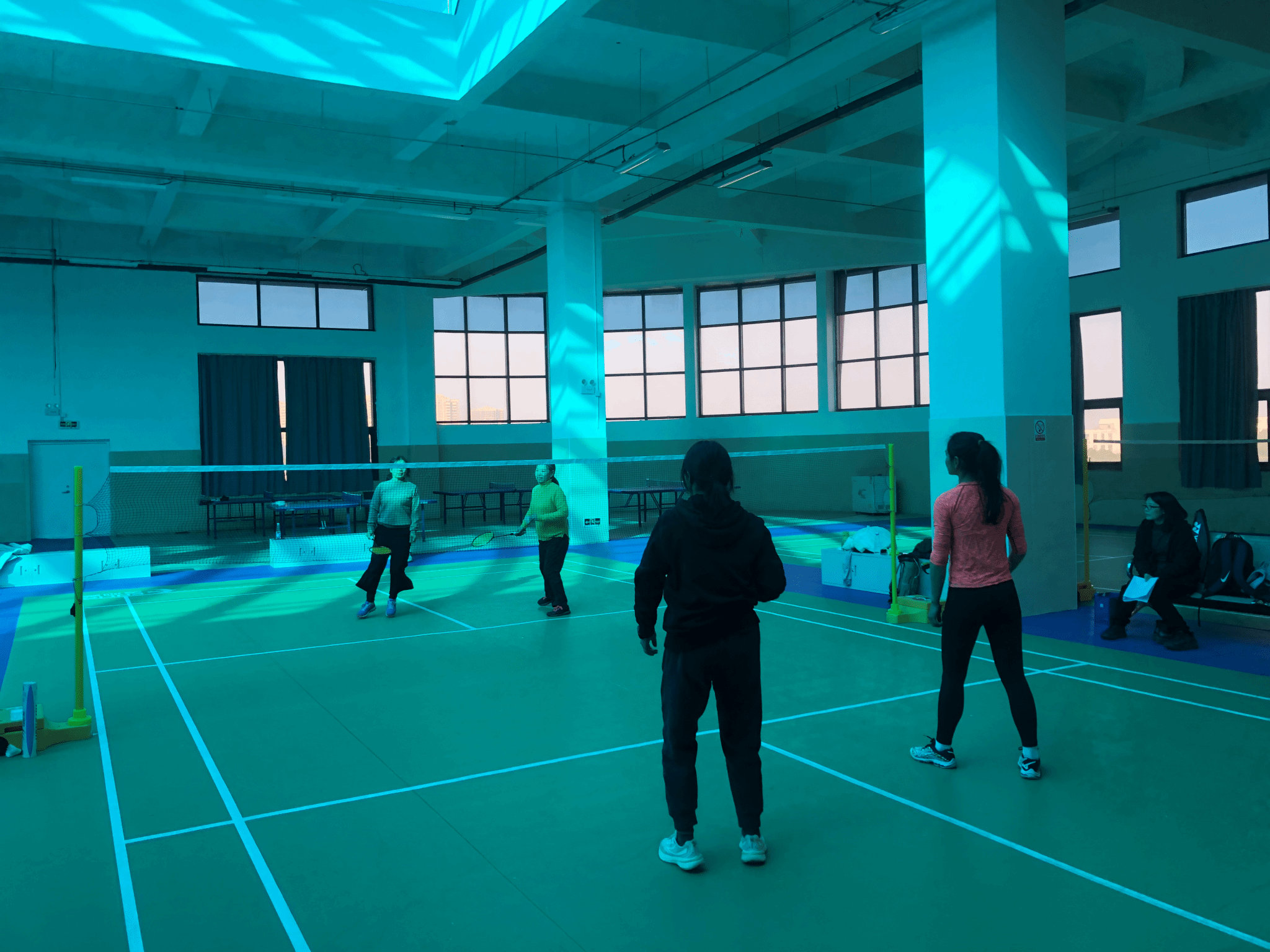 男双赛场,选手们步伐矫健,大力扣杀时气势如虹,每一次击球都伴随着观众们的阵阵惊呼;女双较量同样激烈,女教职工们轻盈的身姿在球场上穿梭,细腻的网前小球处理、精准的落点控制,让人赞叹不已。双打比赛,既是球技的切磋,更是团队默契的深度考验。队友间一个眼神、一个简单手势,便能心领神会,配合得严丝合缝。有的组合深谙前后场分工之妙,有的则擅长双压进攻战术,灵活多变的打法,常常杀得对手措手不及,防不胜防。