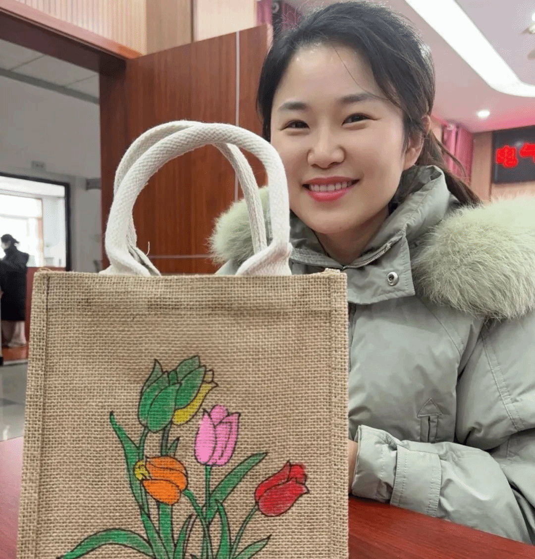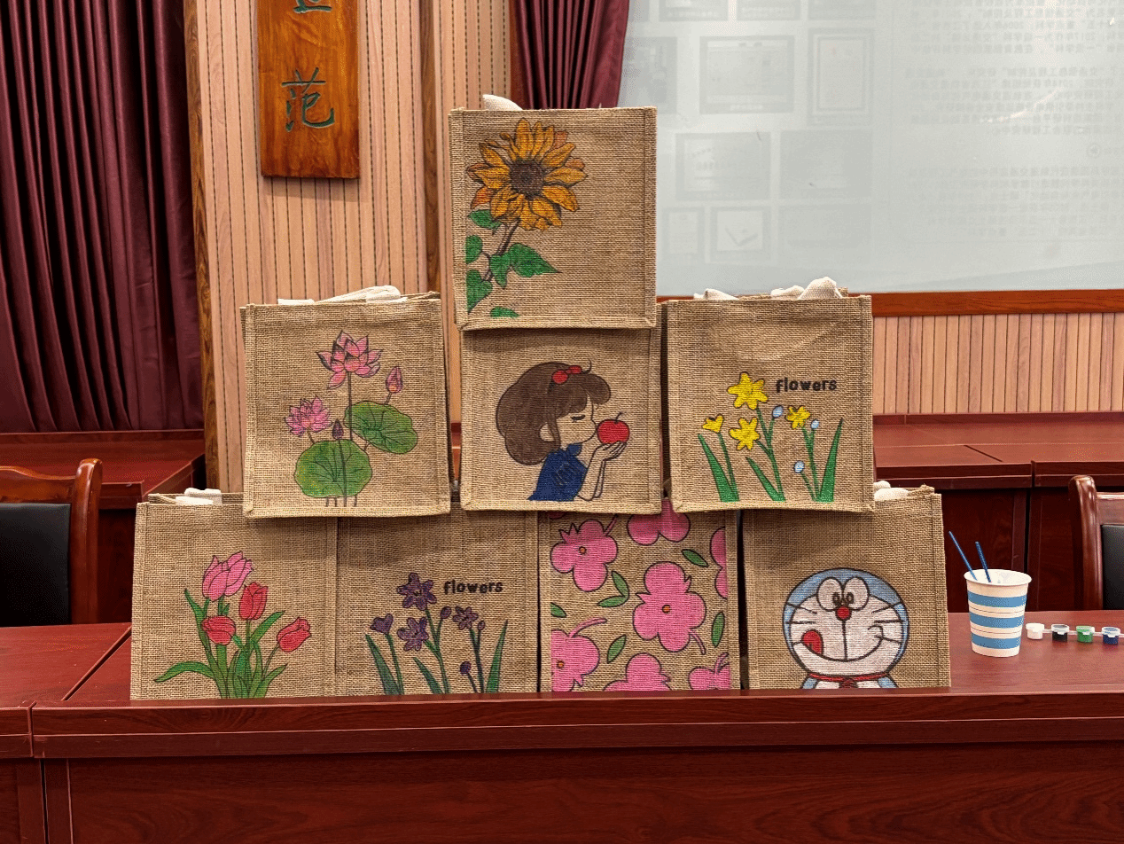 老师们拿起画笔,在包包上挥洒自己的创意。有的色彩鲜艳、充满活力;有的线条流畅、细腻入微;还有的运用独特的绘画技巧,让画面呈现出丰富的层次感。每一笔都倾注了大家对生活的热爱和对美的追求,每一个图案都诉说着一个独特的故事。每个包包都有着独特的风格和特色,展现了老师们的高超技艺和丰富想象力。