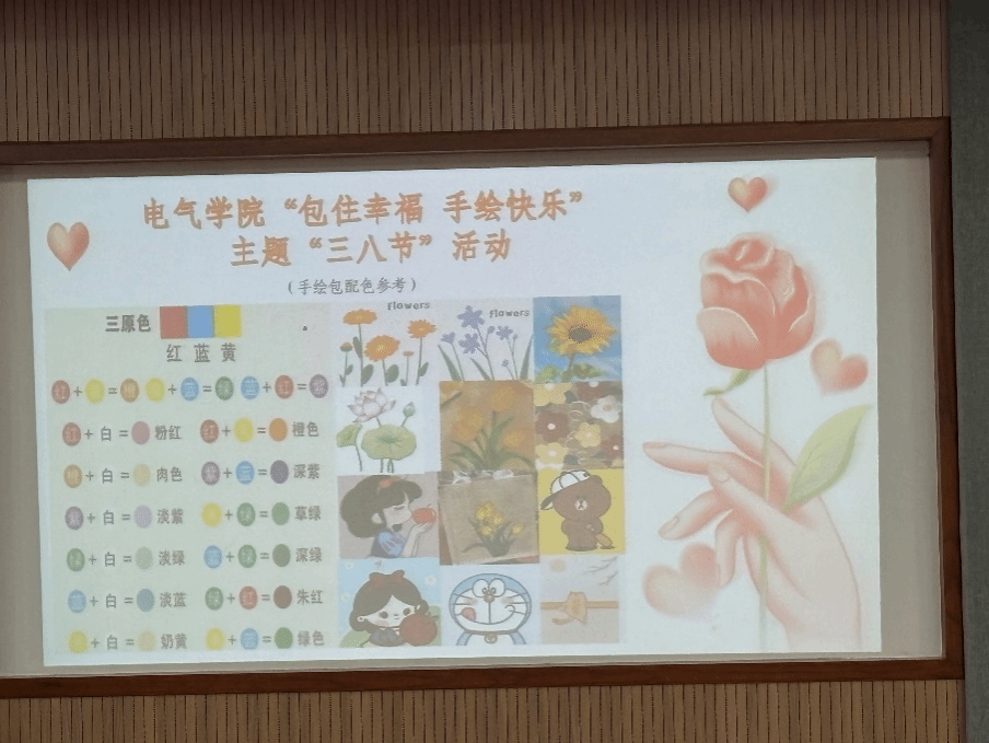 在这春日暖阳的温柔怀抱中,我们的“包住幸福,手绘快乐”三八节活动犹如一幅绚丽多彩的画卷,缓缓落下帷幕。每一位参与其中的女教工,都像是画卷中灵动的笔触,用自己的双手和心灵,描绘出属于这个节日的独特色彩。最后,祝老师们在未来的日子里,依然能像今天这般怀揣着对生活的热爱,用双手去创造更多的美好,让幸福如影随形,让快乐常伴左右。