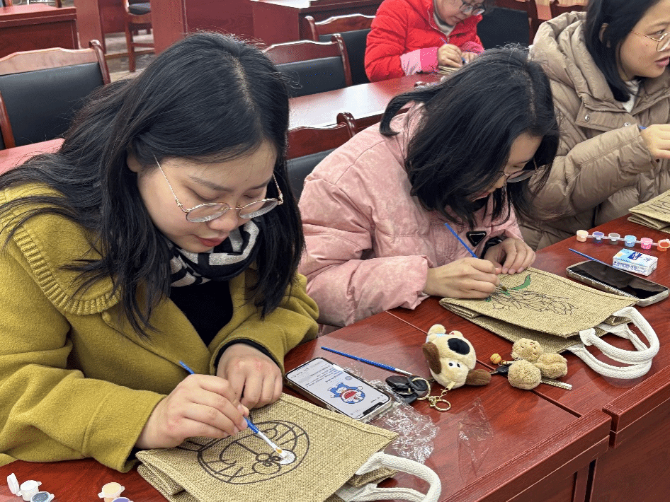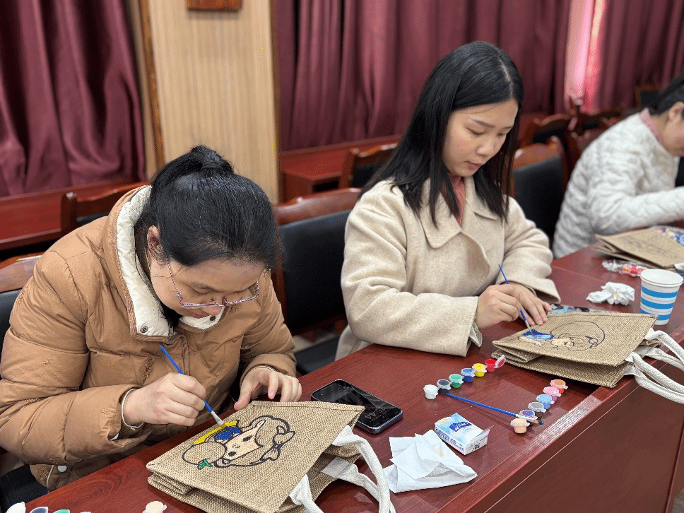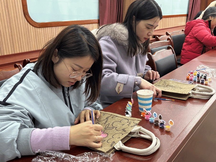 老师们根据自己的喜好和创意,选择不同的颜料,制作出独一无二的包包。现场气氛热烈而融洽,大家相互交流、相互帮助,共同享受着手工制作的乐趣。