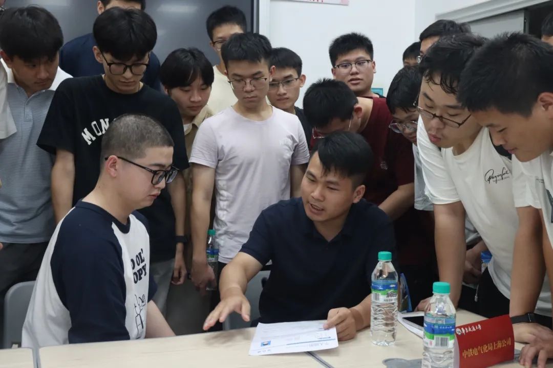 6 月 12 日下午,学院于教 25 栋三楼成功举办 2022 级考研员工专场招聘会暨暑期实习活动。公司党委副书记刘修财,院就业干事彭世惠、22 级辅导员到场参加。本次招聘会汇聚行业优质资源,中国通号建设集团、中铁武汉电气化局集团有限公司、中铁电气化局集团有限公司、中国电建集团江西省电力设计院有限公司、华勤技术股份有限公司、深圳麦格米特电气股份有限公司、广州市邦普电脑技术开发有限公司、天津凯发电气股份有限公司、深圳汇义科技有限公司、南昌铁路勘测设计院有限责任公司等十余家知名企业携岗位参会。