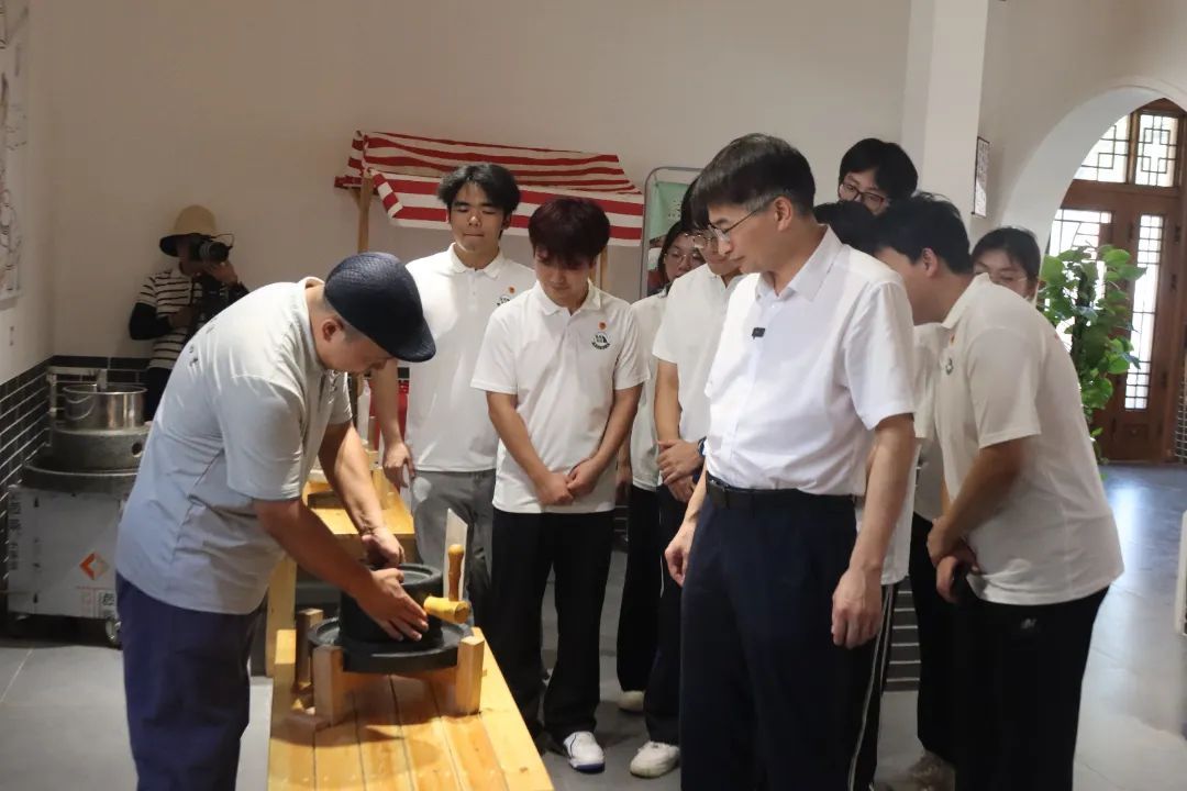 欧阳志刚一行走进庐山市海会镇海庐茶博园,调研当地茶旅融合经验做法,并与实践队队员一道,向海庐茶博园非遗传承人阚师傅学习茶文化,感受新时代茶文化的价值意蕴。欧阳志刚强调:“茶文化是中华优秀传统文化的重要组成部分,同学们要深入挖掘‘精行俭德’的茶文化哲学,在传承实践中厚植文化自信“。