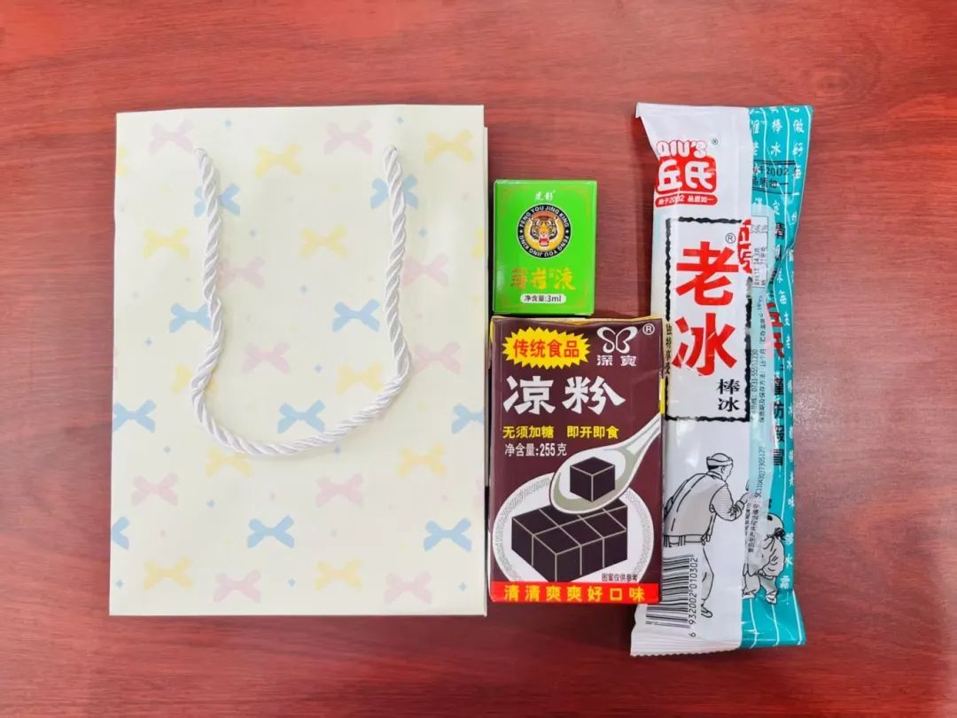 活动现场,学院与南昌联通精心准备了种类丰富的夏日消暑礼包,每一份礼包都凝聚着对学子的细致关怀。“薄荷液”清爽宜人,“凉粉”解暑开胃,“老冰棒”冰凉解渴……从口感清凉的食品到提神醒脑的药物,每一件物品都贴合留校员工夏日消暑的实际需求。