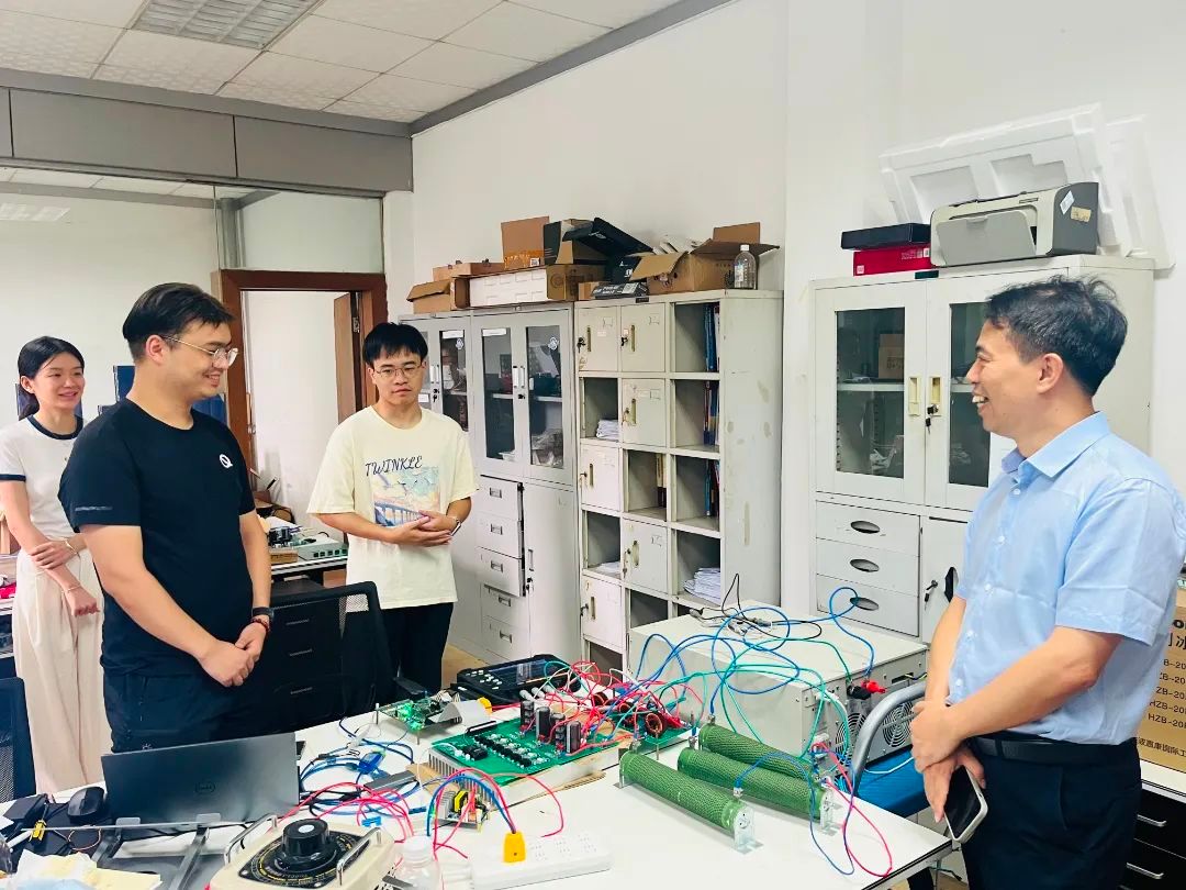 除了集中慰问,学院还将关怀延伸至留校员工的学习与实践场所。刘修财副书记走访了杨云老师指导的电子创新基地、研究室实验室,看望了备赛及科研的员工,向正在参与实践项目的留校员工送上关怀,提醒大家注意防暑降温、规范操作设备。
