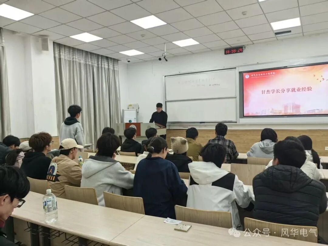 甘杰学长以自身职业探索的亲身经历为蓝本,徐徐铺展三类电气类专业核心就业方向的从业见闻。他从行业特性、工作模式等维度,对这三种方向进行了细致入微地剖析。学长叮嘱同学们,要结合自身特质与职业追求审慎考量,为人生前路勾勒清晰的职业规划蓝图;更勉励大家,一旦锚定目标,便要以矢志不渝的初心稳步前行,让规划在脚踏实地的努力中落地生根。
