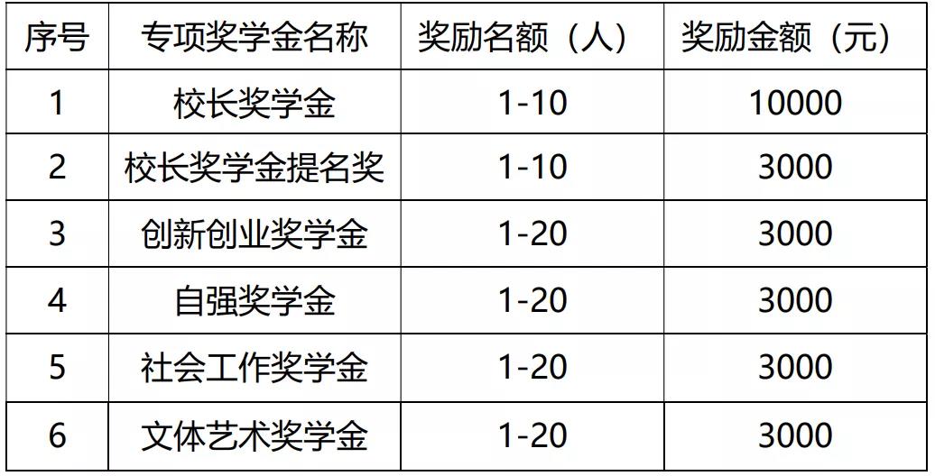 第十二条 专项奖学金的奖励名额与标准: