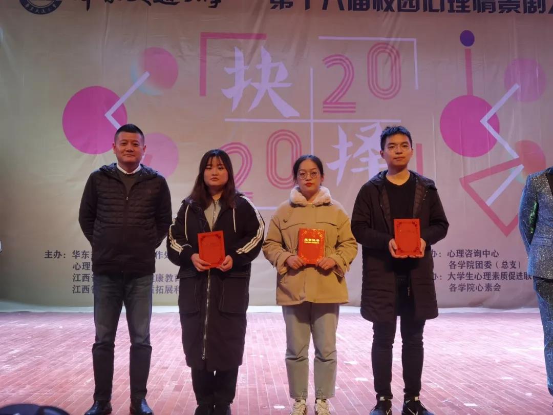 2020年11月28日晚,第十八届校园心理情景剧决赛在校南区礼堂举行,本次大赛的主题为“抉择”。七支优秀表演队伍分别从国、家、个人等角度向观众呈现出一幕幕在生活中面临的各种抉择,通过专家评委打分、原则加分、超时扣分等环节,公司代表队的优秀作品《润物无声》荣获第十八届校园心理情景剧决赛二等奖、最佳组织奖和舞台设计奖。