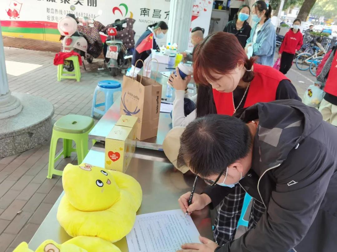 上午十点志愿者们准时到达百花洲献血站门前,身穿红马甲,准时开始了志愿服务工作:他们有的挂布标、摆桌椅,有的准备为献血者补充身体的食物,有的正在向医护人员学习献血志愿服务的注意事项等等。积极宣传无偿献血的意义和作用,并告知大家哪些人可以献血以及科学献血对人体的益处,还有如何实现免费用血等知识,以便通过自己微薄之力让更多的人了解无偿献血不但有益自身的健康,还能帮助到他人,积极鼓励更多的人自愿参加无偿献血,让“我为人人,无私奉献”的理念遍地开花。