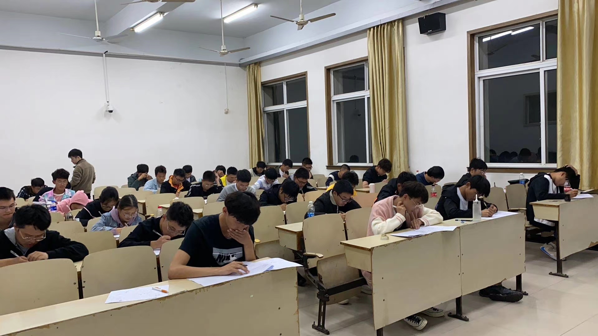为了解公司新生数学知识掌握情况,帮助新生及时巩固高中数学知识,10月19日晚,公司于电气楼进行了新生数学测验,学工办负责人苑莹现场巡考。