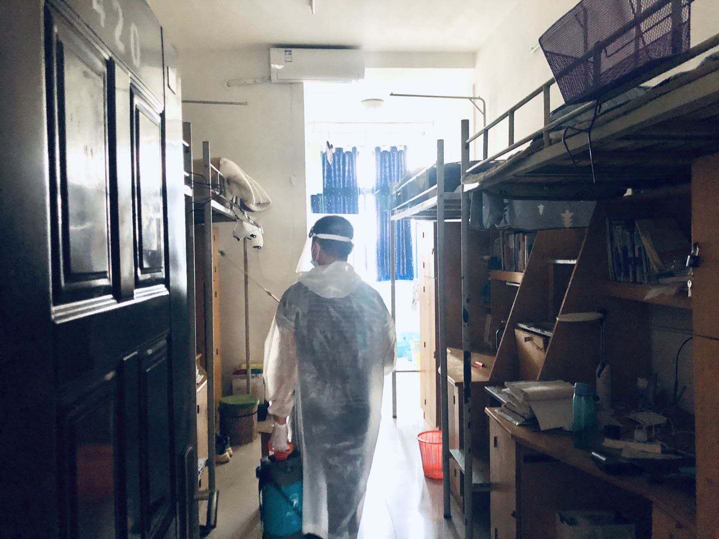 目前,公司第二、三批学子返校工作正如火如荼地进行着。为让同学们返校后有一个健康舒适的学习生活环境,公司志愿者再出发,深入到每一间寝室进行消杀工作。