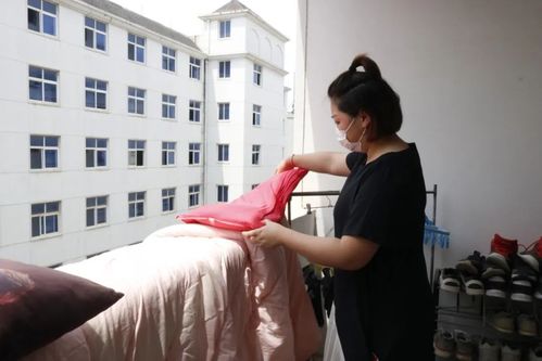 此次活动老师和志愿者们早早来到员工宿舍,有条不紊地进行取被、标记、运被、晒被、收被、放回等工作,在晾晒的过程中不时去敲打、拍击被子,确保每条被子都得到充足的晾晒和消毒,为同学们返校住宿的生活环境提供保障。