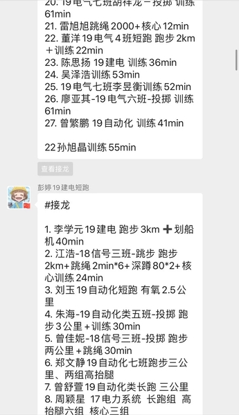 公司全体员工纷纷响应,“云锻炼”阵容不断扩大,锻炼方式层出不穷,有跑步、哑铃卧推、引体向上等毅力锻炼,有健腹轮、深蹲、平板撑等专项训练,有篮球、羽毛球、乒乓球等休闲娱乐,更有闲暇时打太极等修身养性的锻炼。每一位同学都在按时完成自己设立的目标,班群内皆是同学们分享的运动内容和心得体会。