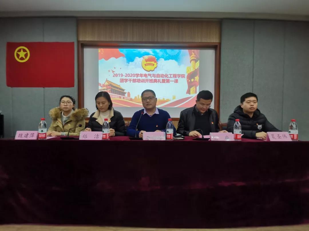 12月2日,2019-2020学年356体育在线官网团学干部培训开班典礼暨团学干部培训第一课于电气楼成功举办。校团委书记、学工部副部长李雪峰,公司党委副书记王巍,学工办辅导员魏建萍、夏圣伟出席开班典礼,学工办主任兼团委书记郑洁主持本次典礼。