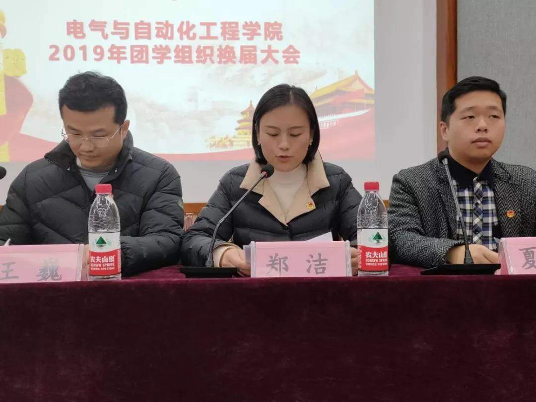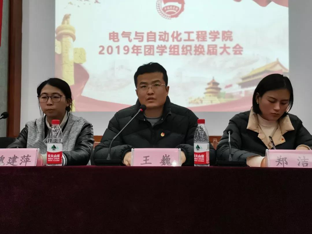 12月1日,公司于电气楼举办团学组织换届大会。公司党委副书记王巍、学工办主任兼团委书记郑洁、学工办辅导员夏圣伟、魏建萍及2018-2019学年各团学组织员工干部代表和2019-2020学年各团学组织全体成员参加本次会议。