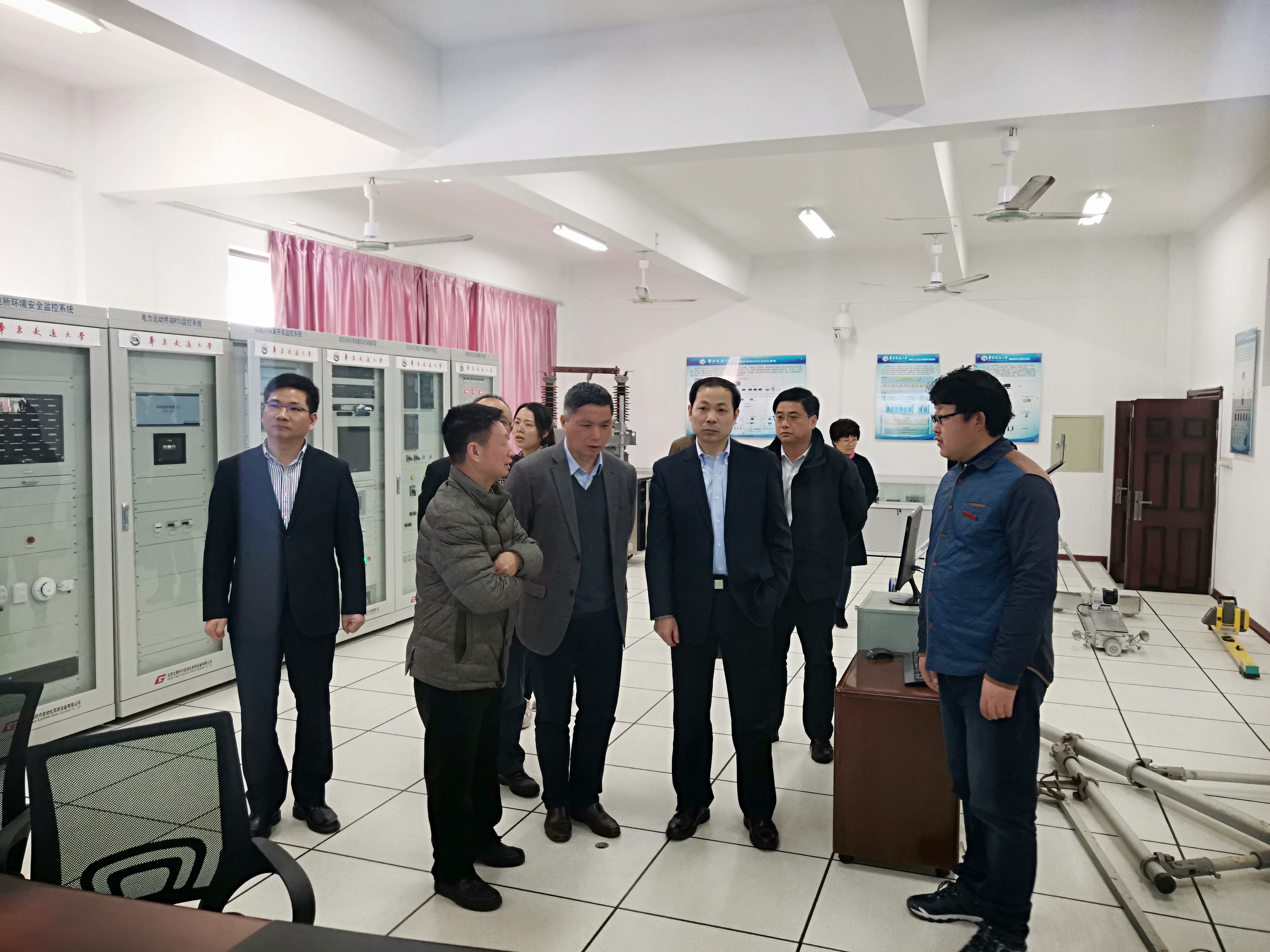报告结束后,在罗玉峰和陈梦成的陪同下,丁荣军和王卫安一同前往参观公司轨道交通基础设施运维安全保障技术国家地方联合工程研究中心、高速列车运行过程仿真实验室以及铁路环境振动与噪声教育工程研究中心。