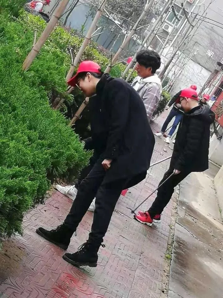 在活动的空余时间,志愿者们顶着小雨为老人们将活动区草丛中的垃圾清理干净。留给一个干净的社区环境给老人们。