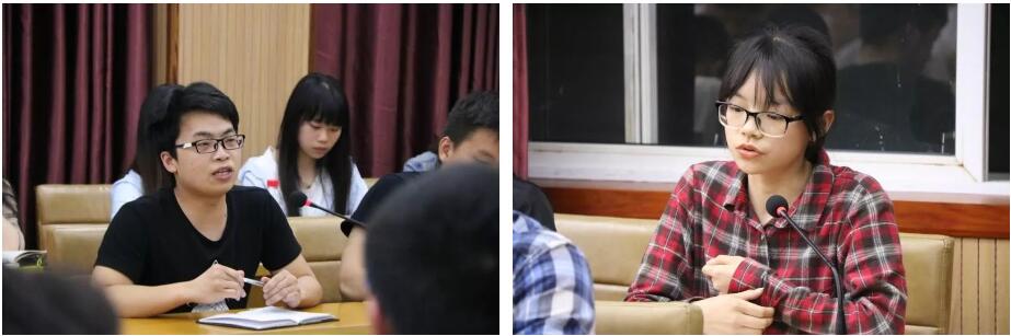 此次交流分享会采取主题式的自由交流方式,以问题为导向,注重实用性、可操作性,从不同视角进行交流碰撞,激发新的思想火花,解决存在问题。14级卓越班陈奎、周佳新、康灿等同学作为员工代表就科技创新、理论实践、考研升学等方面作了学习分享交流报告。