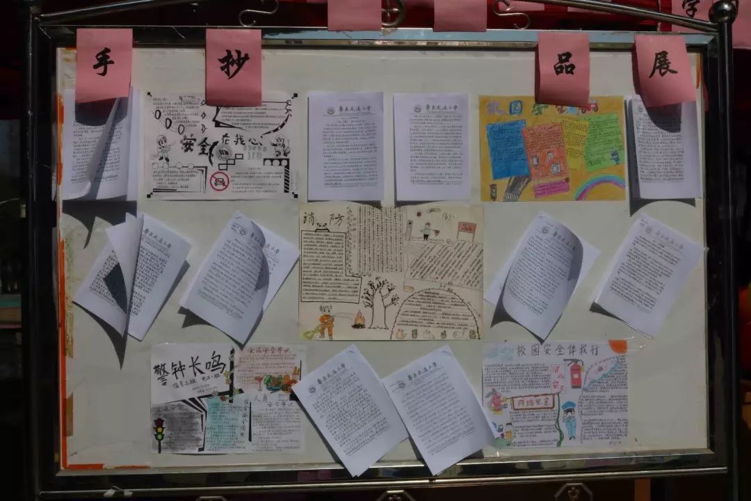 活动场地上的两块展板生动形象的提示了大家生活中有关安全的小细节,还展出了关于党的十九大安全问题的手抄报及征文,成为“安全宣传日”活动中的一道亮丽的风景线。