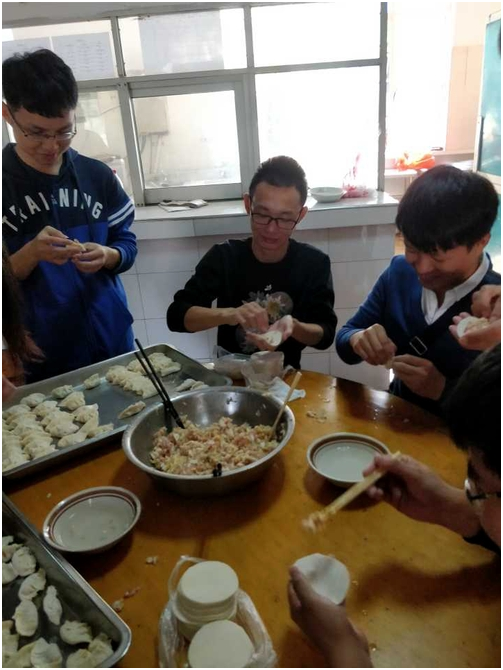 剁肉馅、洗菜、擀饺子皮……同学们紧张有序地进行着一道道工序,有的生疏、有的熟练。“以前我在家不经常包饺子,这一次能够尽自己的一份力量,为老人包一顿饺子,我感到很开心、很满足。”当谈到包饺子的感想,电气三班谢佳美同学这样说道。时间渐渐过去,出自全国各地同学之手的不同形状的饺子一个个成形。虽然很辛苦,但同学们丝毫没有喊累,脸上都洋溢着喜悦的笑容。