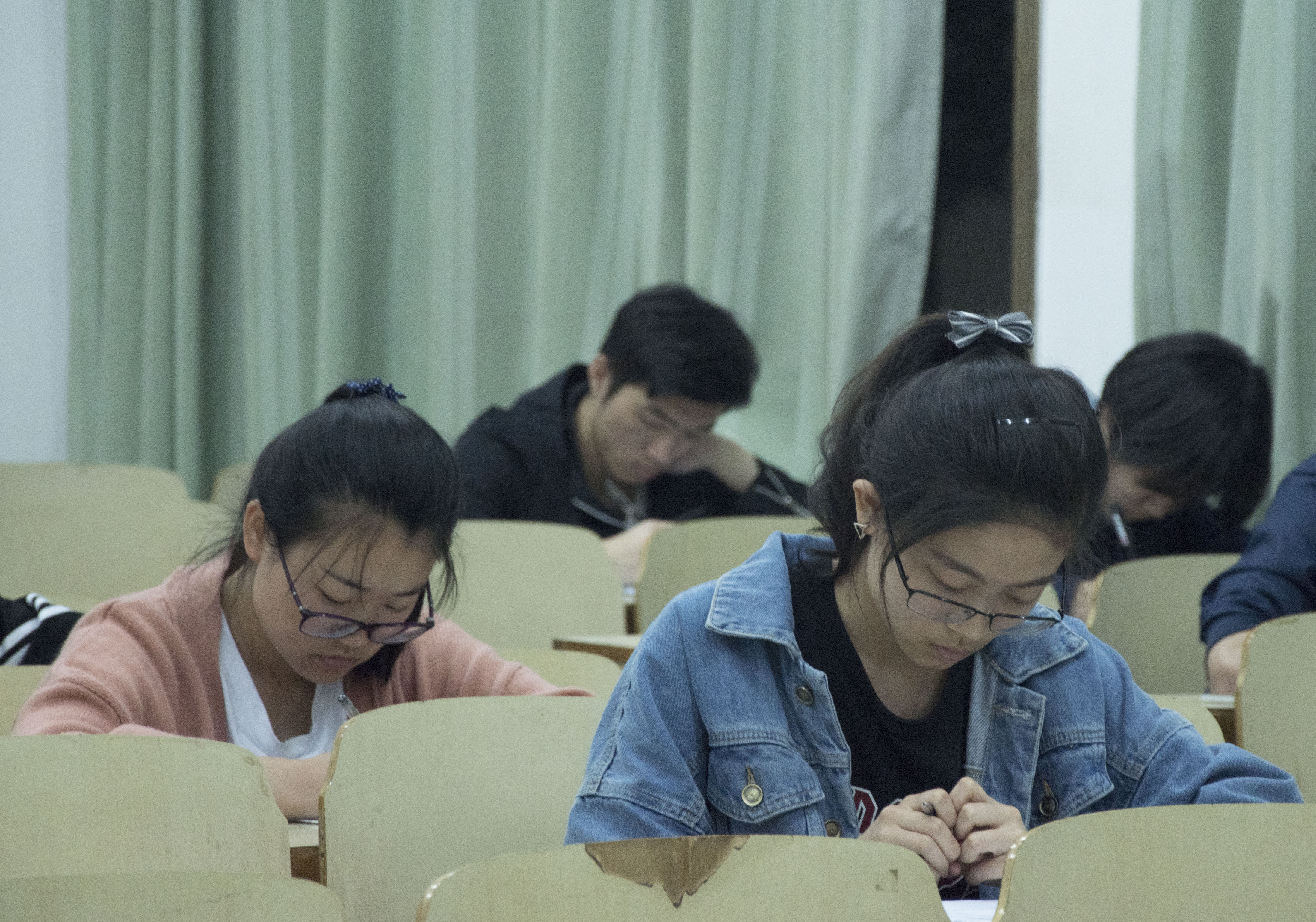 考场上纪律严明,参赛选手认真答题,努力为自己和班级争取荣誉。