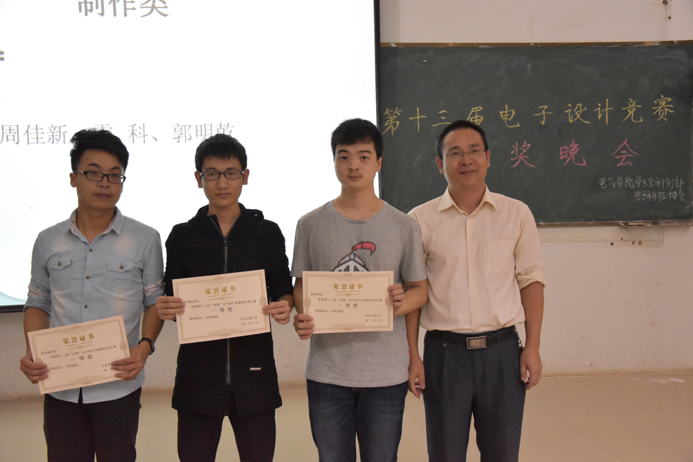 10月20日晚,第十三届“双基”电子竞赛颁奖仪式在教10栋113举行。学院副经理徐雪松、院团委书记王巍出席仪式并为获奖同学颁发获奖证书。 徐雪松首先对获奖同学表示了祝贺,并回顾了电子竞赛的历史。“实践出真知”,他鼓励大家加入实验室,积极参与电子竞赛,做到“开拓视野,丰富知识,挑战自我”。同时徐雪松就单片机学习举例,“背百遍千遍不如动手做一遍”,只要动手做一遍,普遍认为难学的单片机也就不是问题。