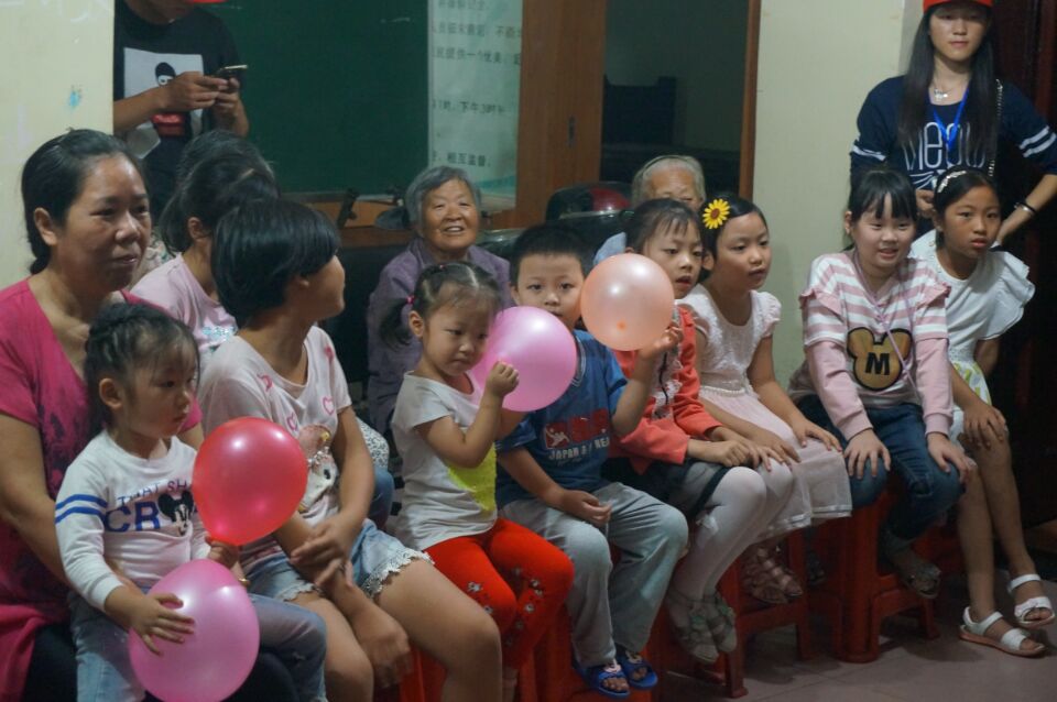 “姐姐,姐姐,这个杯子舞是怎么玩的呀,教教我”。舞台下,一个小女孩小声地问我们的志愿者。“好呀,好呀,你看,我们先要……”志愿者细心地为她讲解到。
