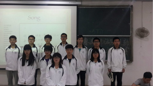 比赛伊始,进入决赛的9个班级都依次通过PPT等形式展现了自己班级的班徽、班训,并进行了班歌大合唱。