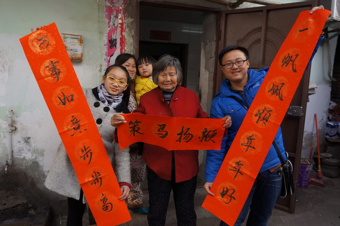 居民邓美姺老太太收到了同学们送出的春联,很是高兴。她的女儿廖女士对记者说到:“平时这些员工就经常来社区奉献爱心,有的时候我们上班顾及不到老人,而这些志愿者是真真实实让我们感受到了温暖。”
