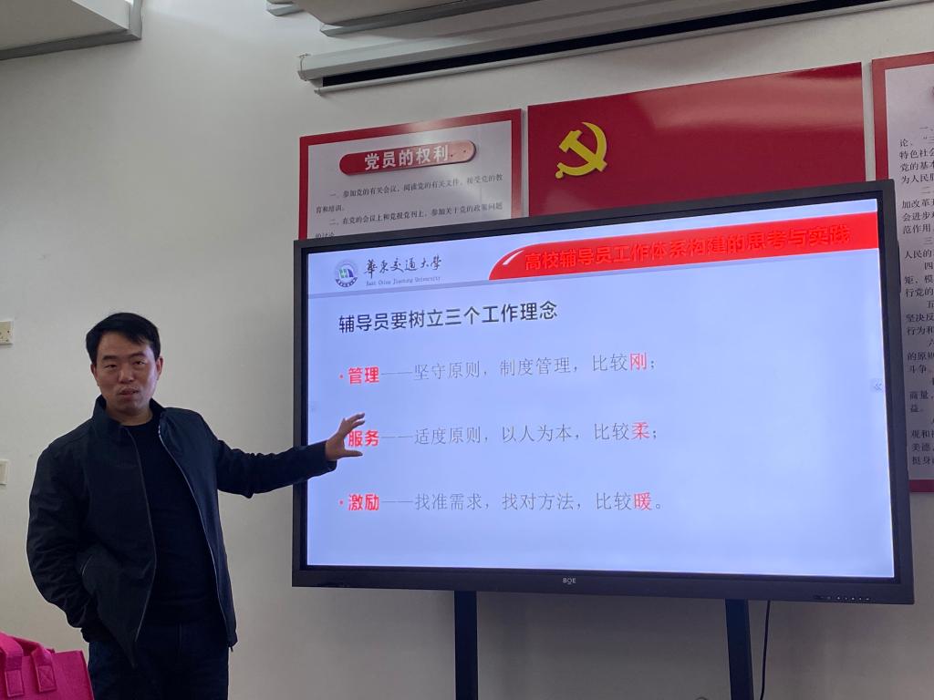 在活动最后,刘修财分享了自己在辅导员工作中的体会,辅导员要用心用情,真抓实干,敢干真干,服务员工成长成才。