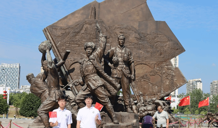 随后,同学们开展了“我与红旗合影”实践活动,每个人都选择最能触动自己的雕塑并站在下方与它们合影。在镜头捕捉的一瞬间,每一位同学都能深刻感受到革命历史的厚重与辉煌。在参观完这些雕塑后,同学们心中感慨万千。与人民军队雕塑合影,不仅具有纪念意义,也能帮助同学们深入了解南昌起义的历史背景及重要意义。