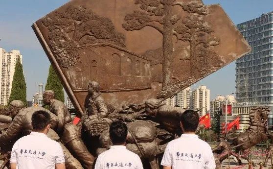 晨光熹微,活动在初日阳光的照拂下拉开帷幕。建军雕塑广场共有九组雕塑,形成“八加一”布局,寓意“八一”,同学们由西向东参观这九座雕塑,依次瞻仰了“英雄集结”“军旗升旗”“挥师渡江”等雕塑。这些雕塑不仅生动地反映了当时起义的情景,更形象地突出了八一南昌起义的鲜明特色。其中主雕塑为“军旗升起”,象征人民军队的诞生和发展。