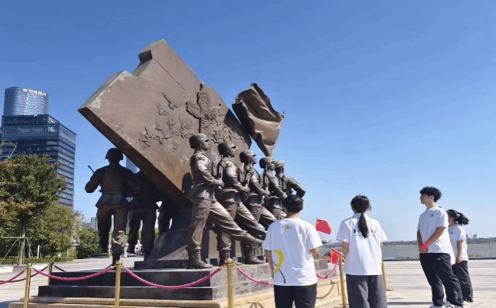 人民军队雕塑在阳光的沐浴下熠熠生辉,仿佛被赋予了生命的光辉。员工会负责人甘杰,雷健波向同学们讲述着巍峨矗立的雕塑背后,那些感人至深的革命传奇。他们细致入微的解说,不仅引领大家深入探寻了先烈们英勇无畏的革命历程,更如同一把钥匙,轻轻开启了同学们内心深处爱国情感的闸门。这份情感的涌动,让每位同学都更加深切地热爱着我们的祖国,激发起为祖国的繁荣富强贡献自己全部力量的坚定信念。