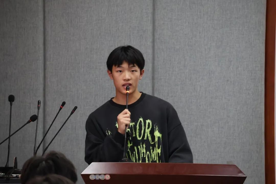 随后,由田径队队长贺天豪发言。贺天豪同学表达了运动员们内心想要争冠的心声,并忠告运动员们赛前做好充足的准备,相信自己,在赛场上拼尽全力。让我们齐心协力,凭借我们的共同努力,开创属于我们的历史新篇章,共同镌刻下辉煌的成就!