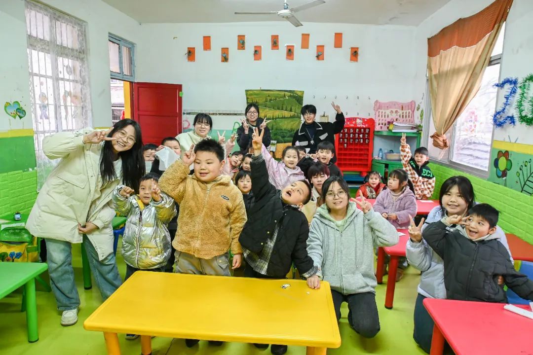 时光荏苒,活动即将画上圆满的句号。临别之时,志愿者们提议与孩子们合影留念,共同铭记这段难忘的美好时光。孩子们也满怀热情地聚集在志愿者身旁,共同留下了这温馨的瞬间。负责摄影的志愿者则捕捉并记录下了这一令人喜悦的时刻。
