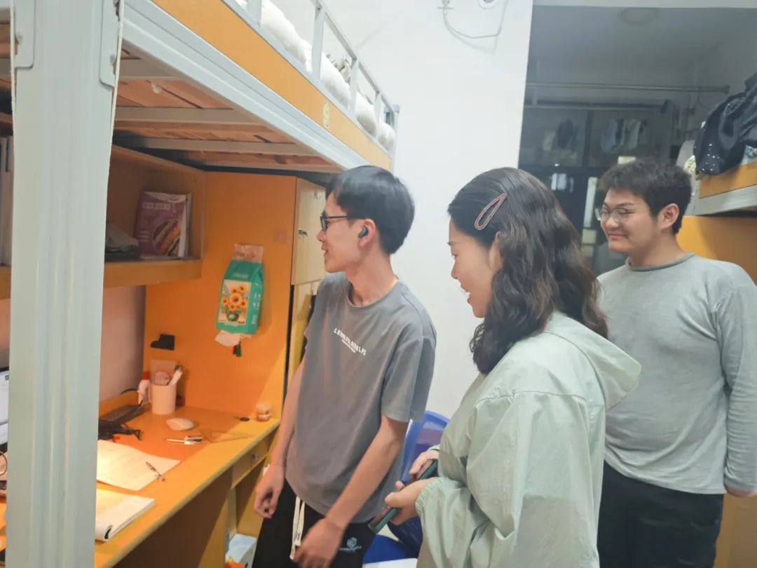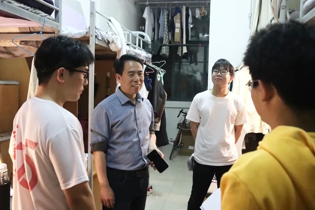 三是深入走访交流。查寝并不单单是检查宿舍,更是师生交流的契机。刘修财注意到不少同学在宿舍写书法、会运动,鼓励同学们德、智、体、美、劳全面发展。各辅导员们与员工亲切交流、询问困难、送上关怀、提供帮助,切实拉近了师生之间的距离,及时掌握员工思想动态。