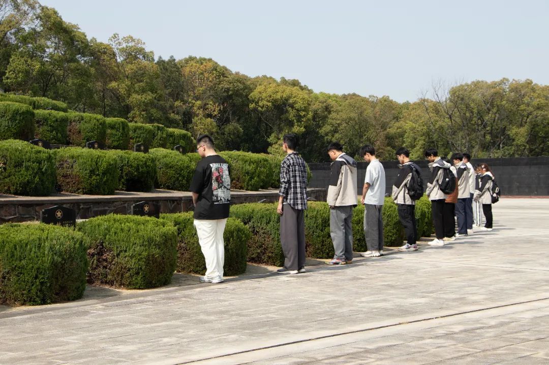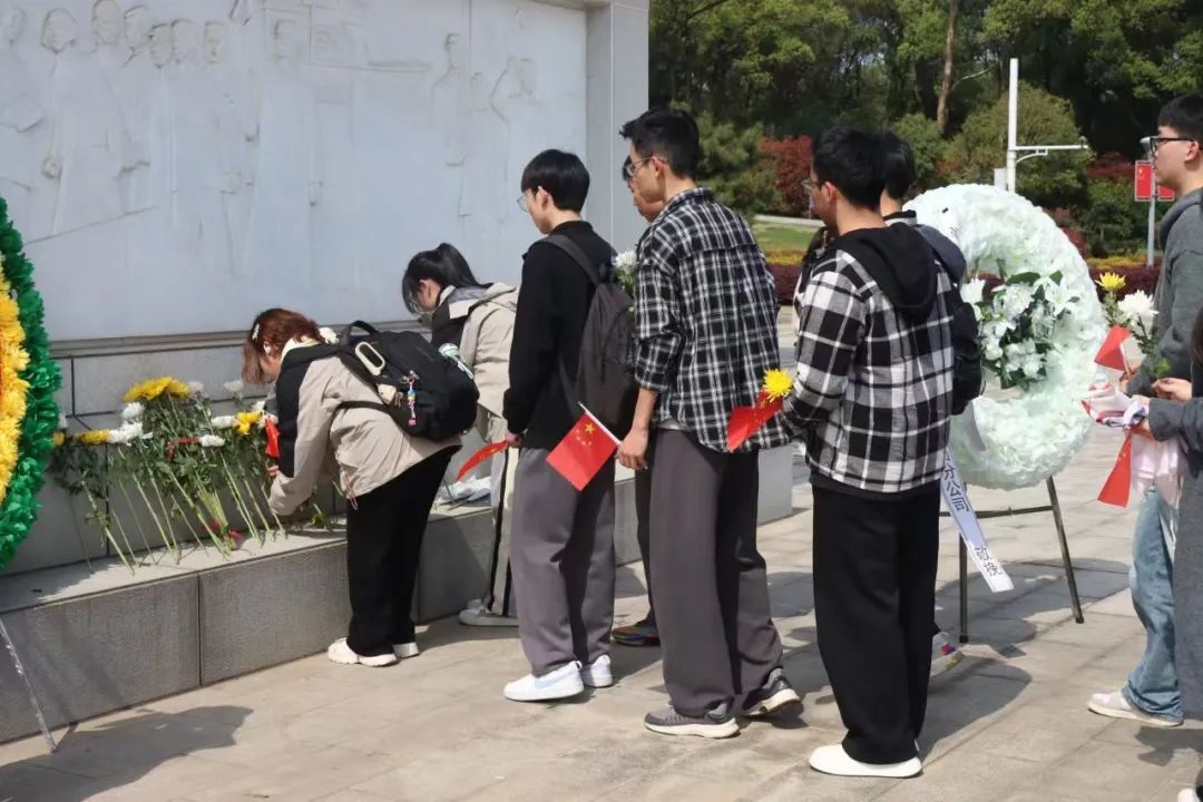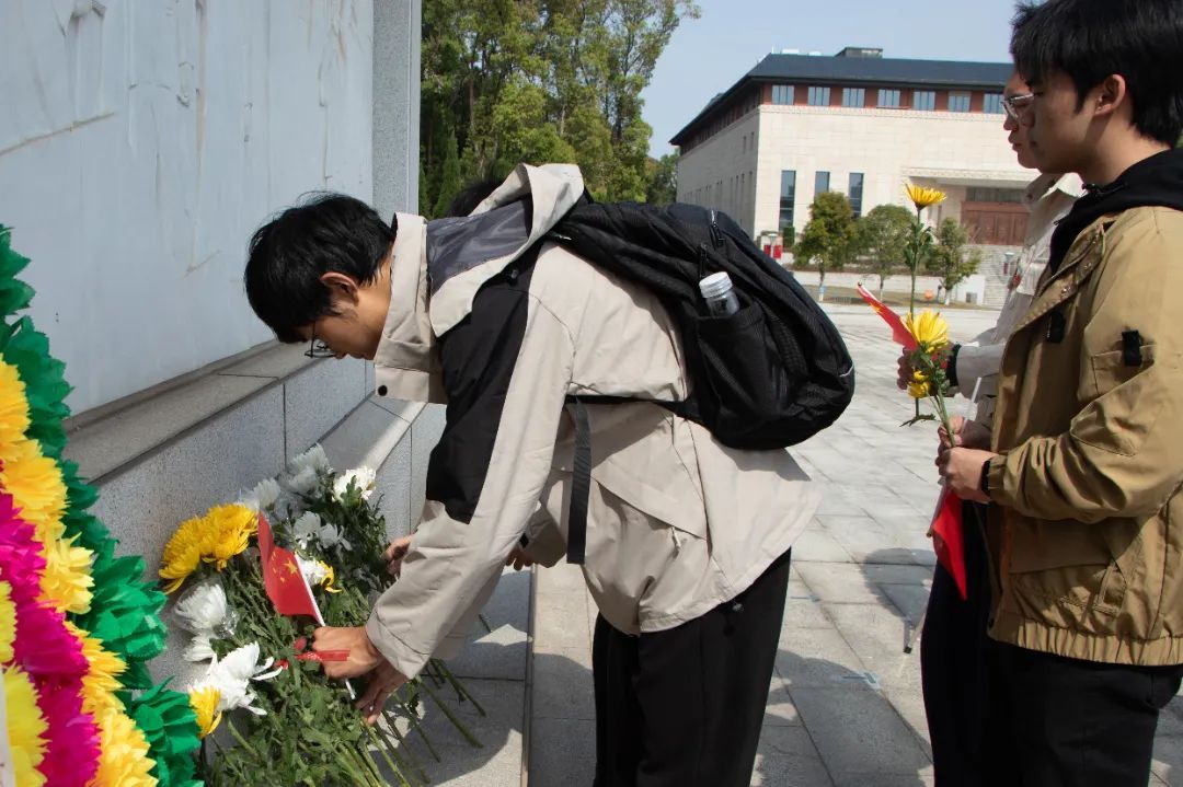 宣誓过后,同学们低头肃立,进行庄严的默哀仪式,表达对先烈的深深缅怀,随后排队上前为他们献花,每一次鞠躬都是革命思想的洗礼,每一朵鲜花都是对革命先烈的悼念。《生命的清单》有言:人的生命有三重死亡,当他被世界彻底遗忘,才真正死去。即便烈士们的墓碑上只余姓名,他们仍将与世长存,他们的功绩被世人铭记,他们的血脉被世人传承,他们的精神被世人弘扬。
