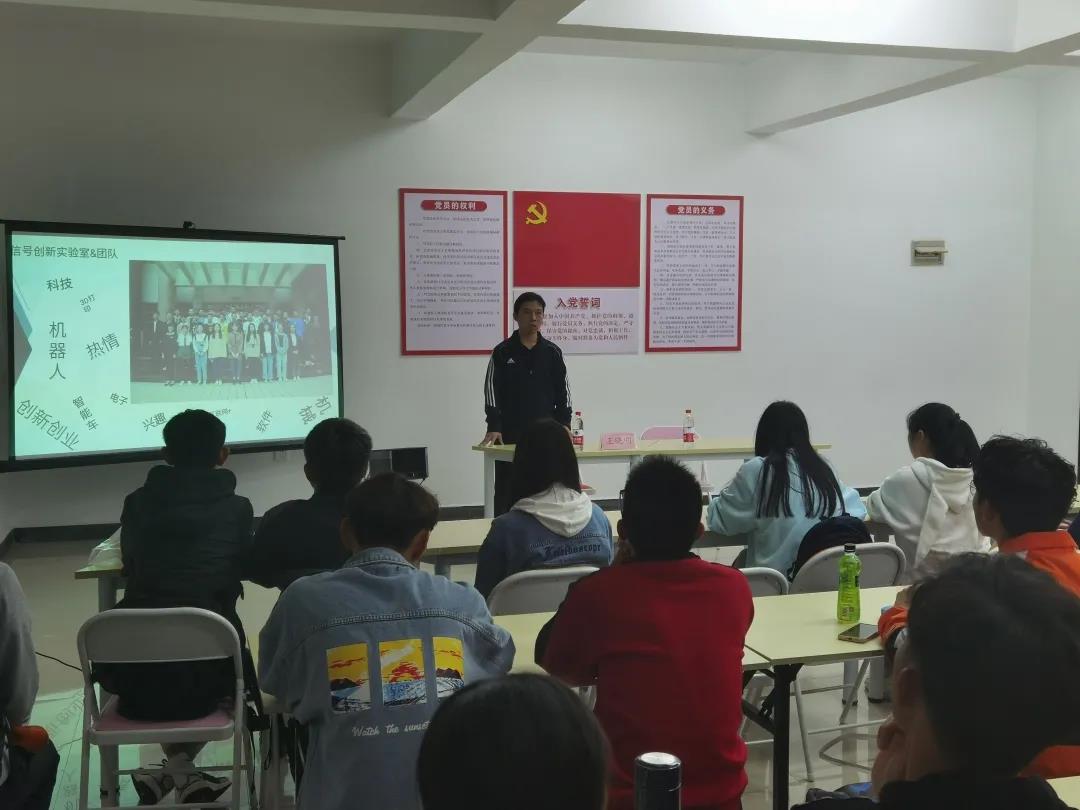 王晓明向同学们介绍了信号创新实验室团队的日常工作,详细分享了参加各类比赛的心路历程,他向同学们提出自己带赛的几点感悟:一是高校非常重视双创工作,竭力培育优势项目;二是现在的政策环境非常有利于高校员工创业;三是勇敢参加双创大赛,有助于实现员工的梦想。