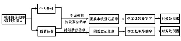第十二条基金资助项目经费使用严格履行报批手续,由项目主持人申请,指导教师为经办人,团委审核并登记后,财务处审批报账。
