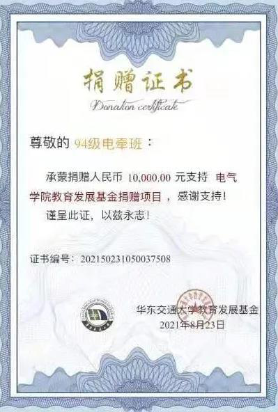 近日,1994级电牵班员工向学院捐赠了人民币10000元,以支持“356体育在线官网教育发展基金捐赠项目”。
